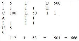 Some people link the origin of “the number of the beast” with the concept of gematria (the system of assigning numerical values to words or letters). For example consider the title Vicarius Filii Dei. The term has been used in connection with the pope and his tiara or crown. By counting the Roman numerals present in the words (a “u” is counted the same as a “v”) and adding them up, this result is obtained: